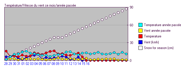Moyenne des vents MAX: 173.9 kmh de 068° à: 00:44 le: 16 Février 2025